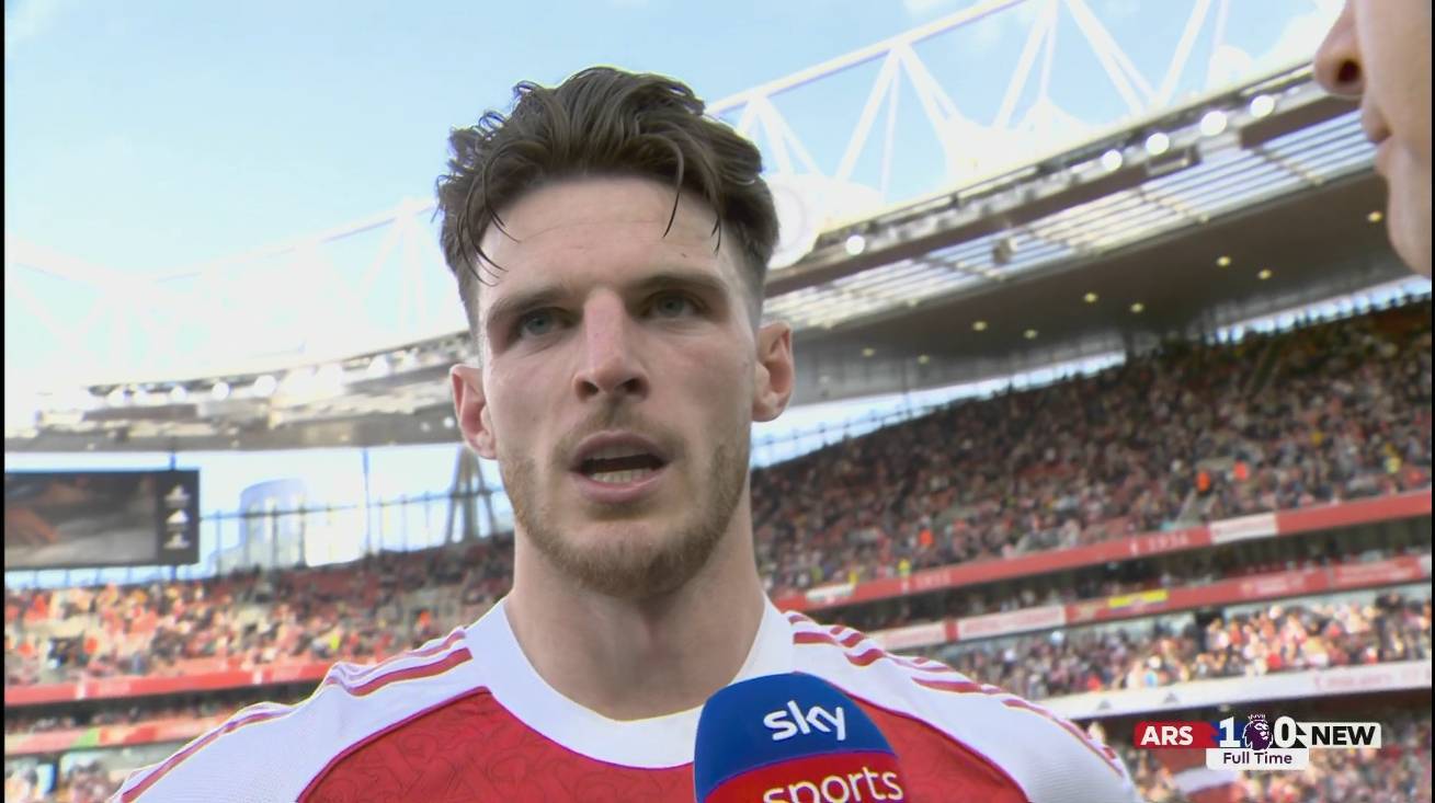 直播吧05月19日讯 英超第37轮,阿森纳主场1-0力克纽卡。赛后为枪手进球的赖斯接受了媒体采访。